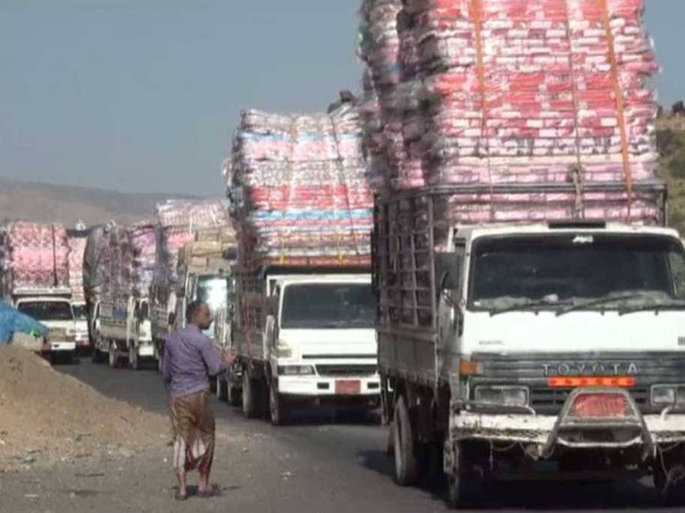 تعز:وصول قافلة مساعدات من مفوضية شؤون اللاجئين لمدينة تعز