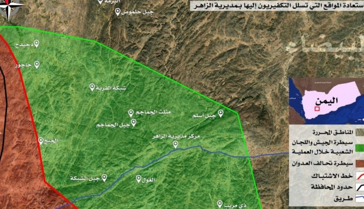 وكان المتحدث الرسمي للقوات المسلحة قد أعلن أمس تنفيذ عملية” النصر المبين” التي تمكنت خلالها القوات المسلحة من استعادةِ كاملَ المناطقِ التي كان قد احتلها العدوُّ وكذلك تحريرَ مناطقَ واسعةً في مديرياتِ (الزاهرَ والصومعةَ) بمحافظةِ البيضاء.