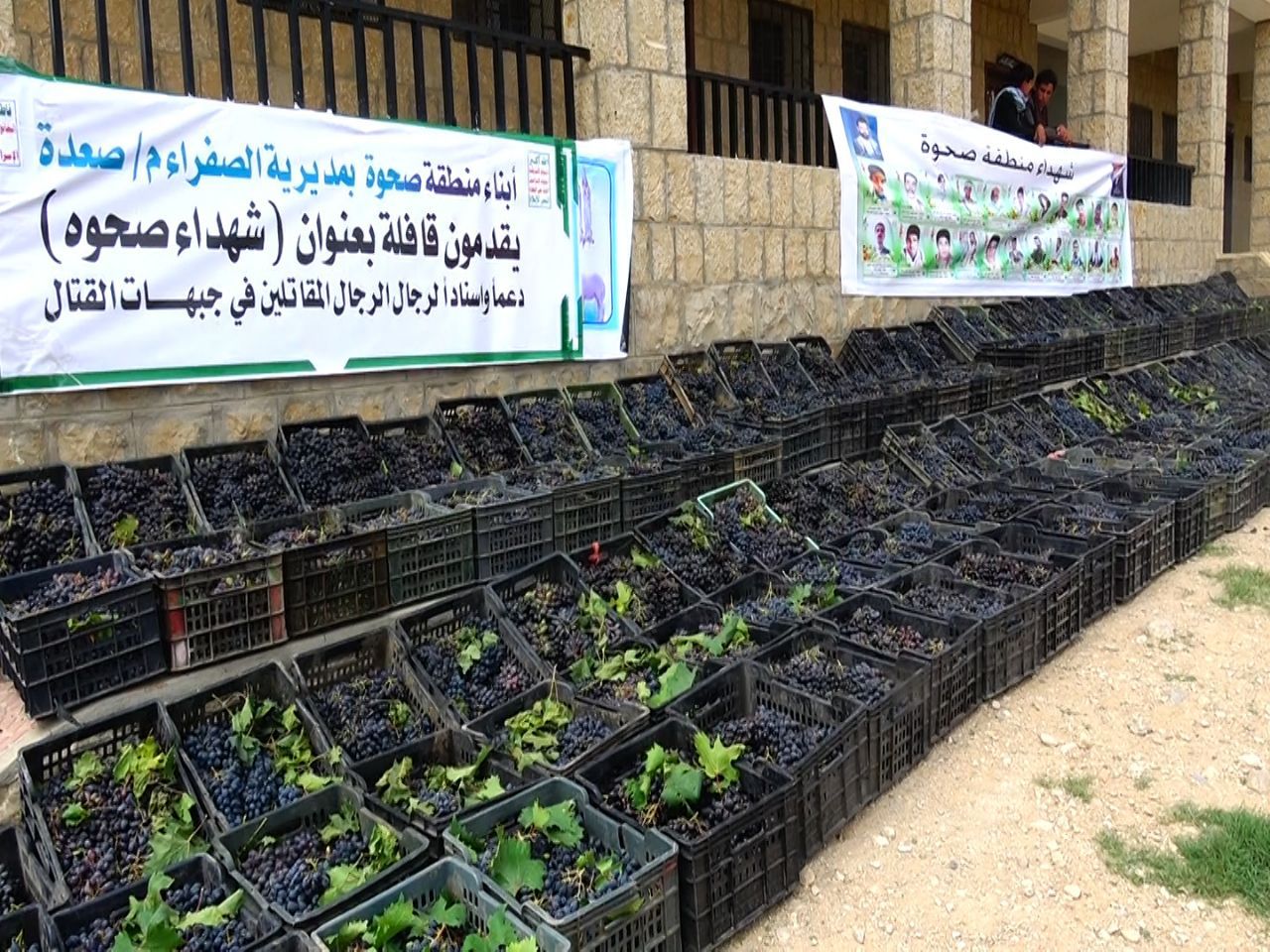 قدّم أبناء منطقة صحوة في دماج بمديرية الصفراء محافظة صعدة اليوم قافلة من العنب بعنوان (شهداء صحوة) دعماً واسنادا للمرابطين في الجبهات من الجيش اليمني المسنود بالشعب.