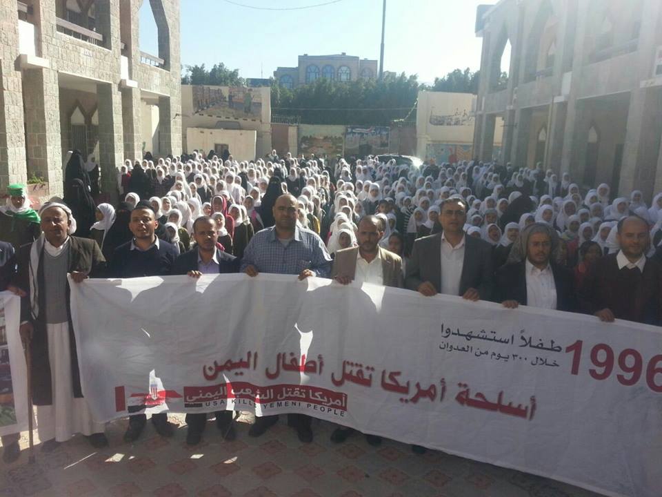 وفي السياق ذاته اقامت طالبات مدرسة بلقيس للبنات صباح اليوم وقفه احتجاجيه بعنوان “امريكا تقتل الشعب اليمني” اكدن من فيها أن أمريكا شريك أساسي ورئيسي في العدوان على اليمن فضلاً عن ببيعها الاسلحه للعدو السعودي واستقدام المرتزقه من مختلف جنسيات العالم وهذا يؤكد بأنها هي العدو الحقيقي وما دول الخليج الا ادوات لتنفيذ مشروعها القائم على حصار وقتل الشعب اليمني.
