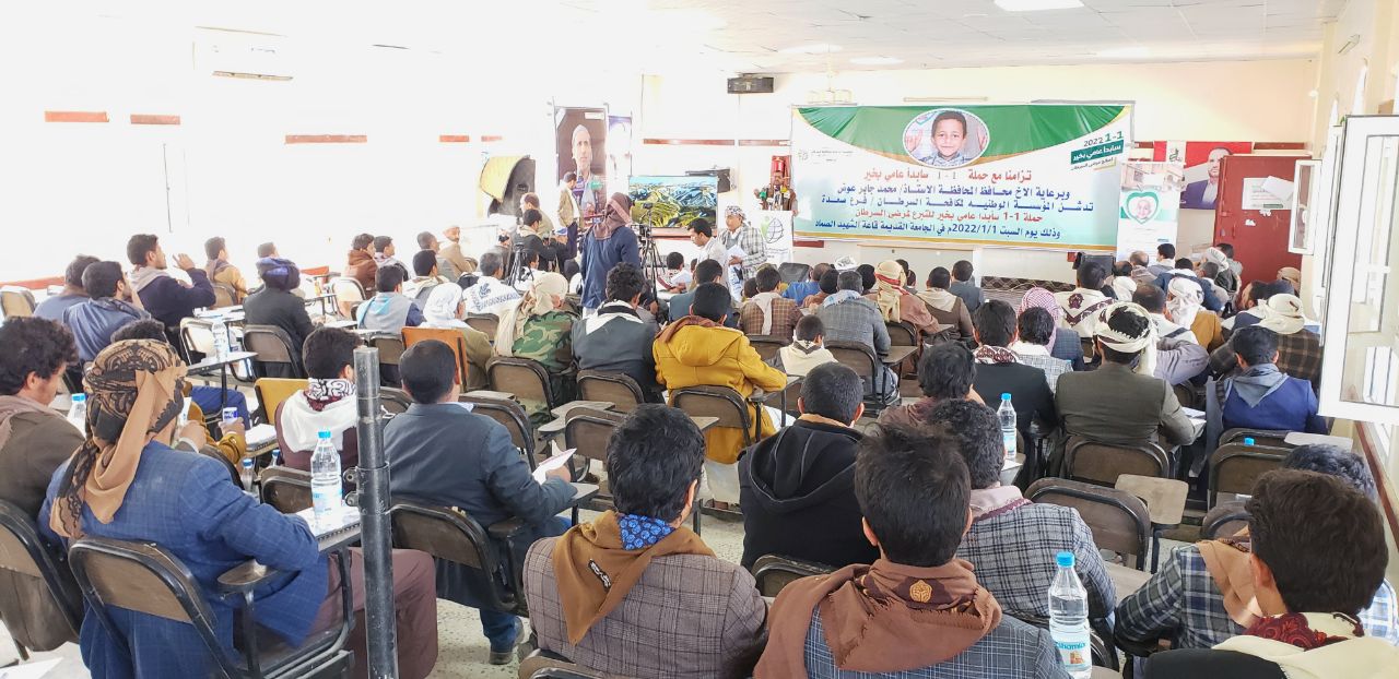 وتم في التدشين بحضور مدراء المكاتب التنفيذية وأعضاء السلطة المحلية ومدير فرع المؤسسة زيد العجري وعدد من التجار والشخصيات الاجتماعية، عرض ريبورتاج عن حالات السرطان وأهمية مساندة مؤسسة مكافحة السرطان في معالجة ورعاية مرضى السرطان.