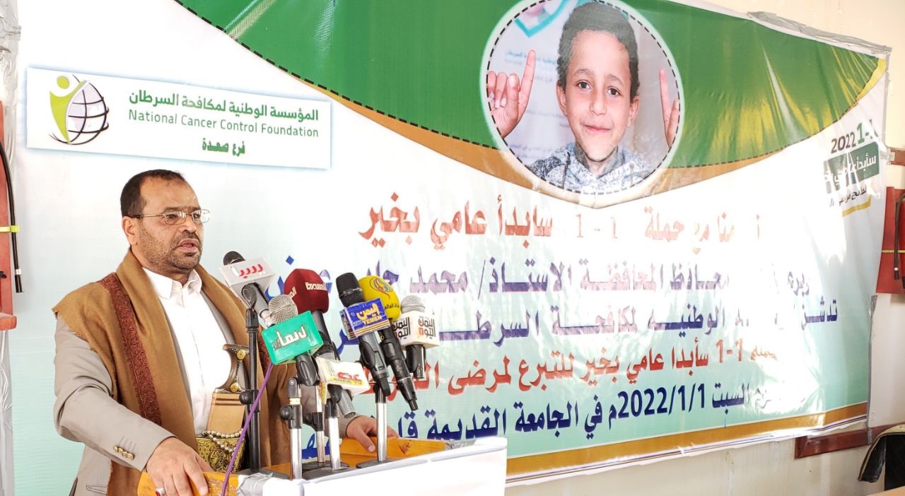 دشن فرع المؤسسة الوطنية لمكافحة السرطان بمحافظة صعدة اليوم الحملة السنوية 1 – 1 سأبدأ عامي بخير للعام 2022م لدعم مرضى السرطان.
