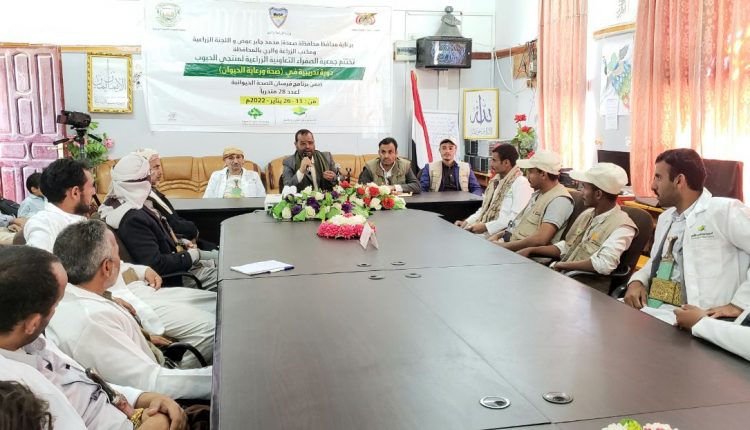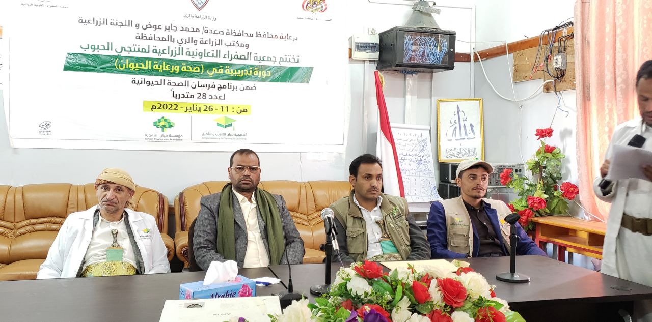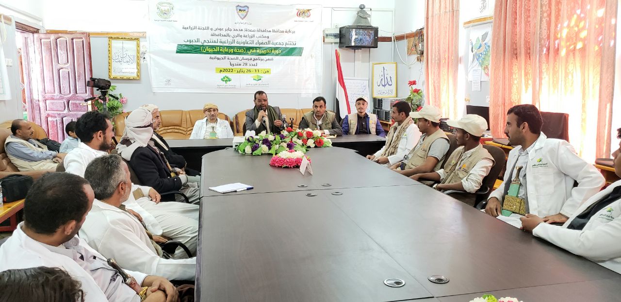اختتمت جمعية الصفراء التعاونية الزراعية لمنتجي الحبوب اليوم في محافظة صعدة دورة تدريبية في مجال صحة ورعاية الحيوان ضمن برنامج فرسان الصحة الحيوانية.