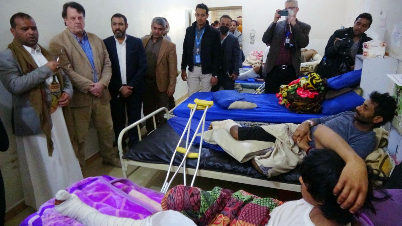 واطّلع عوض وغريسلي، ومعهما أمين عام المجلس الأعلى لإدارة وتنسيق الشؤون الإنسانية والتعاون الدولي عبدالمحسن طاووس، على أحوال الجرحى والمصابين في المستشفى الجمهوري العام في المحافظة.