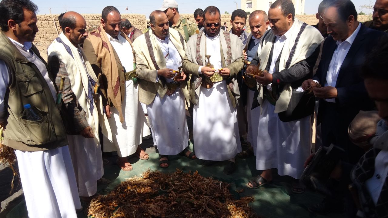 إلى ذلك دشن مطلق وعوض والشامي ومعهم مدير مكتب الزراعة زكريا المتوكل يوما حقليا لحصاد محصول الزنجبيل والكركم (الهرد) ضمن المحاصيل البديلة لشجرة القات وبما يسهم في تحقيق الاكتفاء الذاتي من هذين المنتجين.