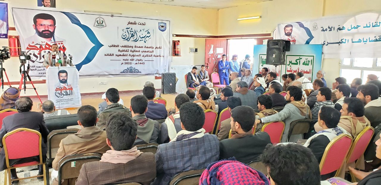 نظمت جامعة صعدة وملتقى الطالب الجامعي بالمحافظة اليوم فعالية ثقافية بالذكرى السنوية للشهيد القائد حسين بدرالدين الحوثي، تحت شعار “شهيد القرآن”.