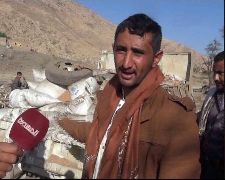 وأفاد مراسل المسيرة نت في صعدة أن الناقلة كانت تحمل مساعدات إنسانية لأبناء مديرية غمر إلا أن العدوان استهدف هذه الناقلة متسبباً باستشهاد سائق الناقلة ومرافقه.
