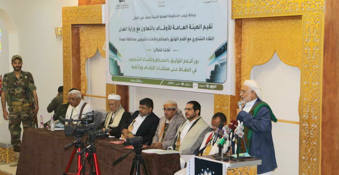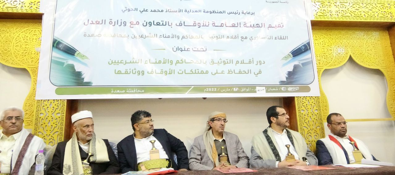 عُقد بمحافظة صعدة اليوم لقاء تشاوري لرؤساء أقلام التوثيق بالمحاكم والأمناء الشرعيين في محافظة صعدة، نظمته الهيئة العامة للأوقاف بالتعاون مع وزارة العدل تحت شعار “دور أقلام التوثيق بالمحاكم والأمناء الشرعيين في الحفاظ على ممتلكات الأوقاف ووثائقها”.