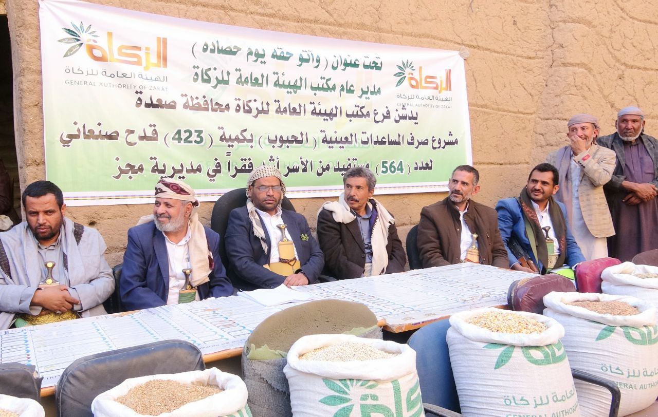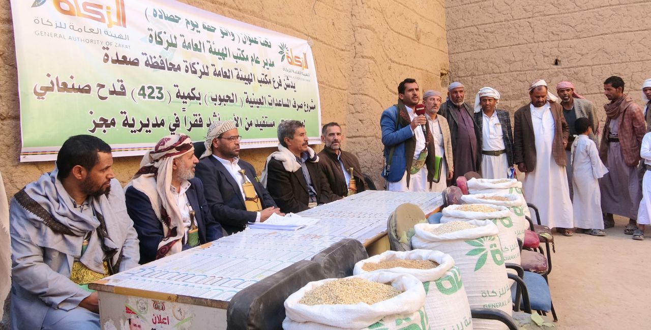 دشن فرع الهيئة العامة للزكاة في محافظة صعدة، اليوم، مشروع صرف المساعدات العينية “الحبوب” بكمية 423 قدحاً صنعانياً لـ564 مستفيداً من الأسر الأشد فقراً في مديرية مجز بالمحافظة، تحت شعار “وآتوا حقه يوم حصاده”.