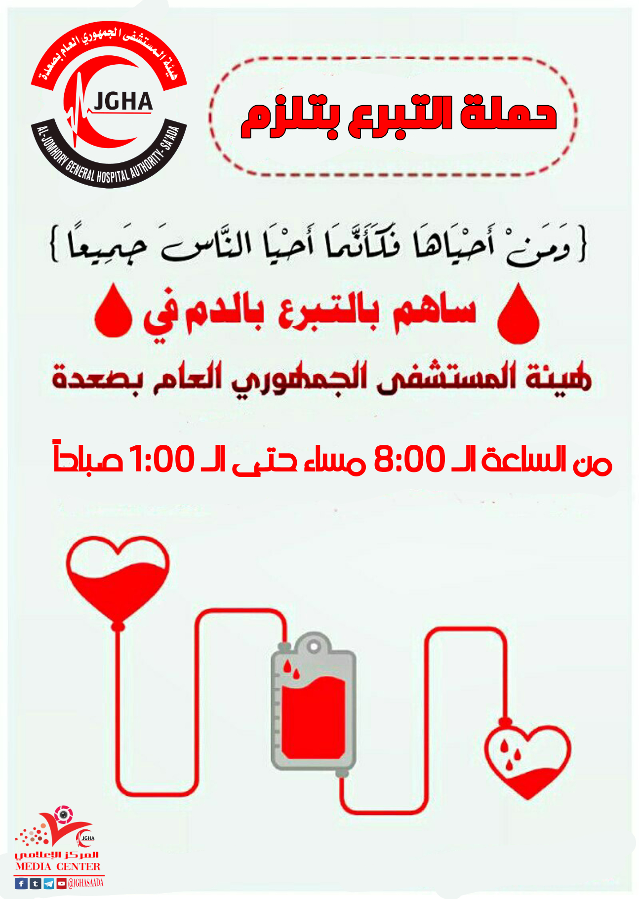 وكانت هيئة المستشفى الجمهوري العام، دعت إلى المشاركة في حملة التبرع بالدم، وذلك في أوقاتها المحددة
