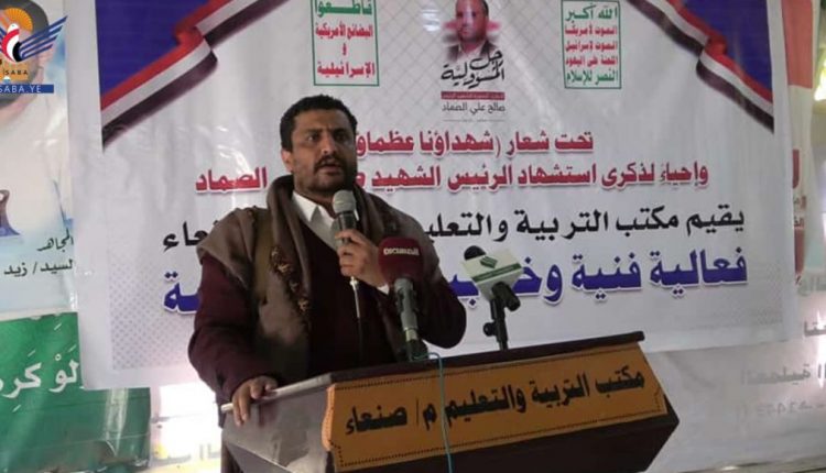 واعتبر مدير مكتب التربية هادي عمار، الشهيد الصماد أيقونة للصمود ومدرسة للبذل والعطاء ورمزا وطنيا سيظل في أذهان كل أبناء الشعب اليمني.