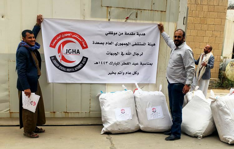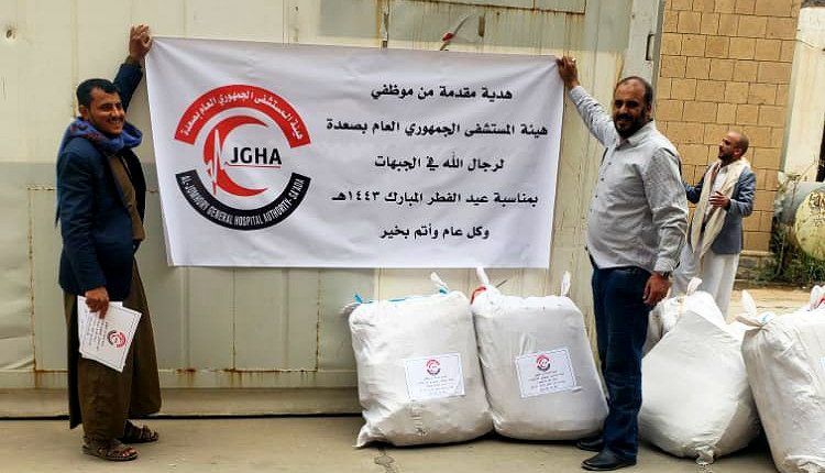 قدم موظفي هيئة المسشتفى الجمهوري بصعدة ، قافلة عيدية للمرابطين في الجبهات.