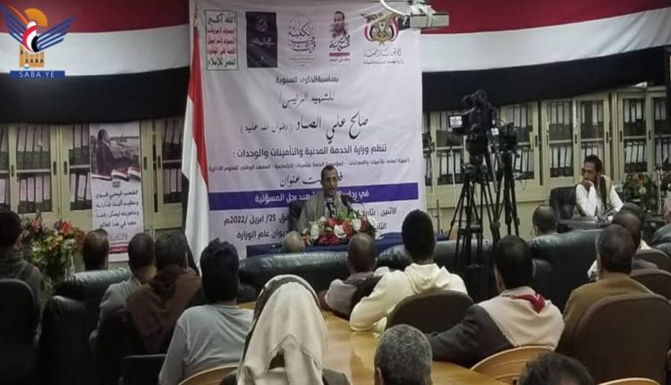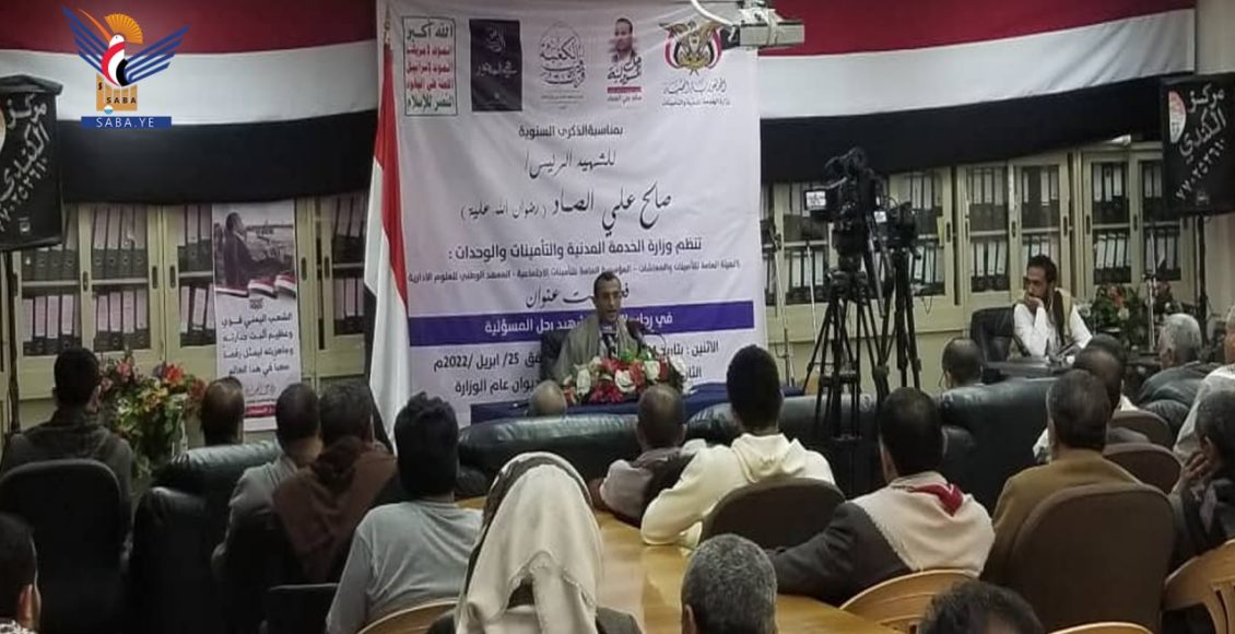 وفي الفعالية اعتبر وزير الخدمة المدنية سليم المغلس، ذكرى استشهاد الرئيس الصماد محطة لاستلهام الدروس والعبر من سيرته وحياته وشجاعته وعطائه.