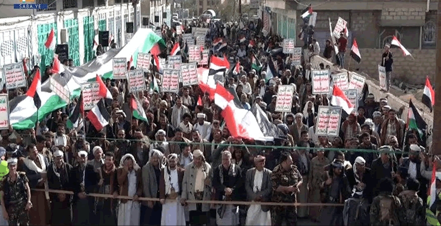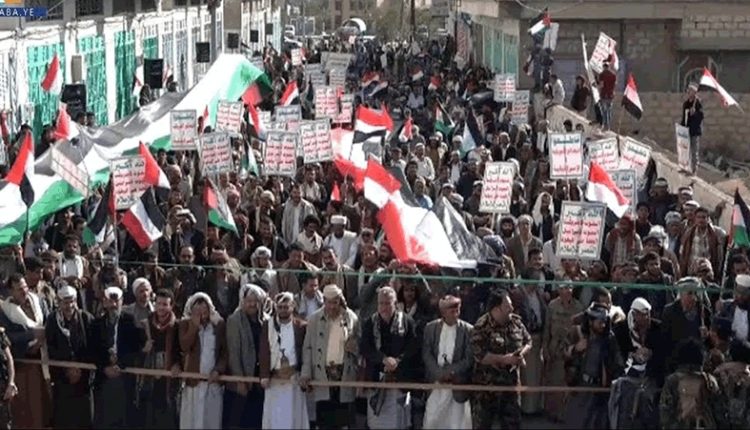 ورفع المحتشدون في المسيرة التي جابت شوارع وأحياء مدينة البيضاء اللافتات المؤكدة الرفض القاطع للتطبيع مع العدو الصهيوني والتضامن مع الشعب الفلسطيني وقضيته العادلة ونصرة الأقصى الشريف.