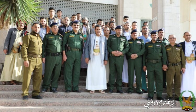 وخلال الزيارة قدموا لهم التهاني بحلول عيد الفطر المبارك مثمنين لهم الدور البطولي والتضحيات العظيمة التي يقدمونها ورفاقهم المجاهدين في مختلف جبهات الكرامة والعزة والدفاع عن الوطن وقدموا لهم الهدايا والمبالغ الرمزية ناقلين لهم تهاني وتبريكات قيادة الوزارة ممثلة باللواء عبدالكريم أمير الدين الحوثي، متمنين لهم الشفاء العاجل.