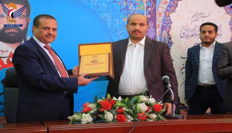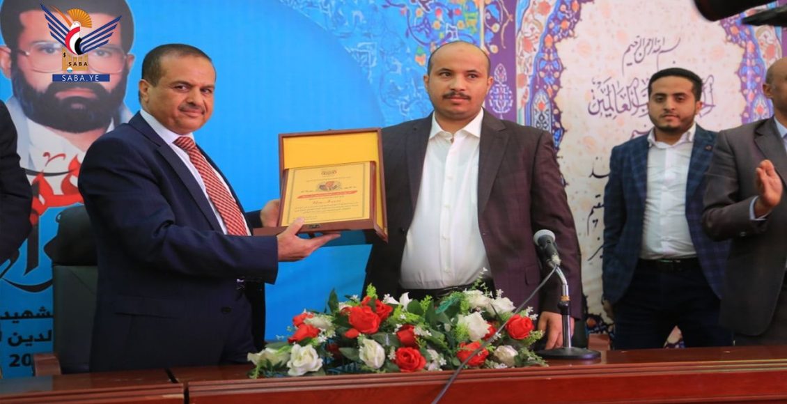 وخلال الحفل سلّم وزير الصناعة المطهر درع الوزارة لوزير النقل الدرة عرفاناً بجهوده في تحسين أداء العمل أثناء توليه قيادة الوزارة.