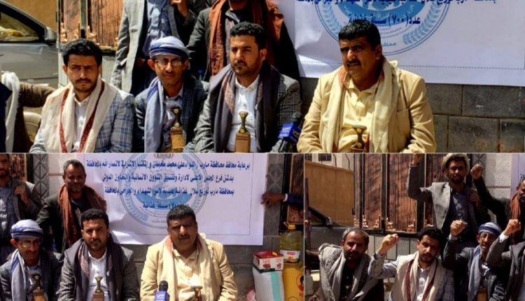 فرع الشؤون الإنسانية بمأرب يدشن توزيع 700 سلة غذائية لأسر الشهداء والجرحى