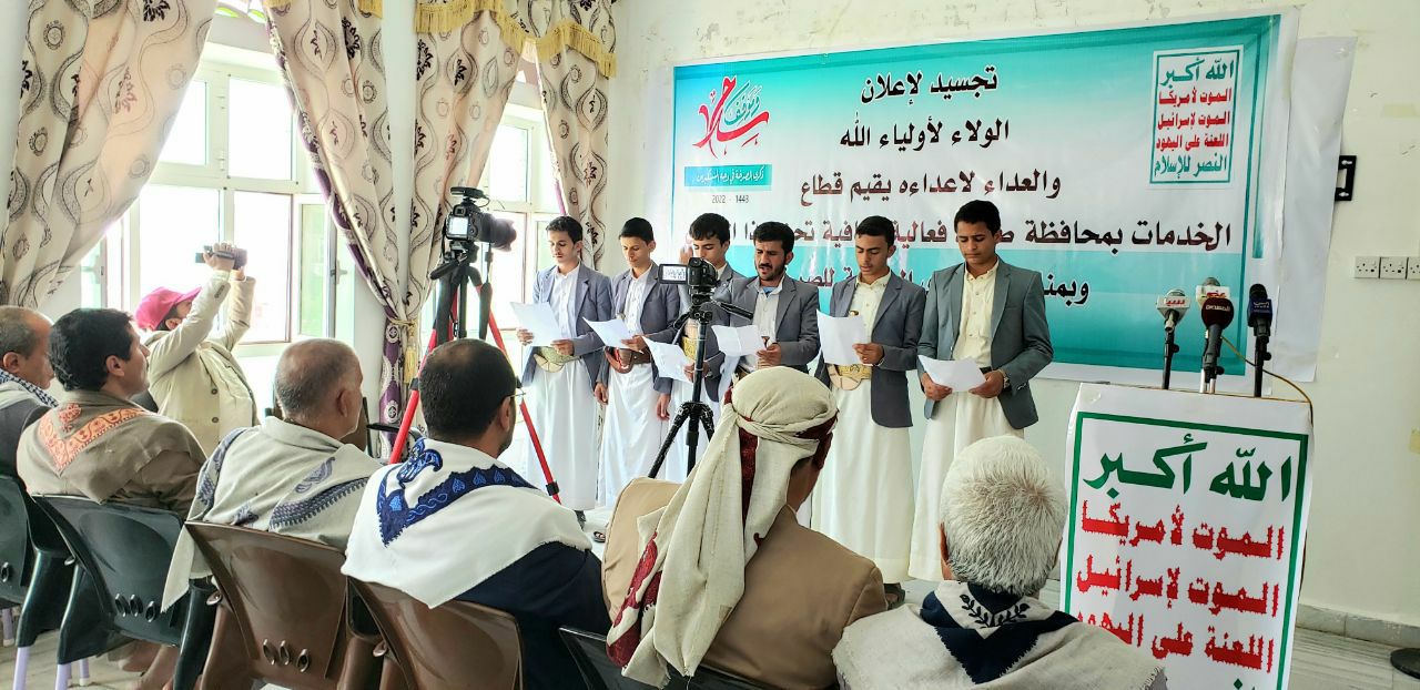 نظم قطاع الخدمات في محافظة صعدة اليوم فعالية ثقافية بالذكرى السنوية للصرخة في وجه المستكبرين تحت شعار ” تجسيدا لإعلان الولاء لأولياء الله والعداء لإعداء الله “.