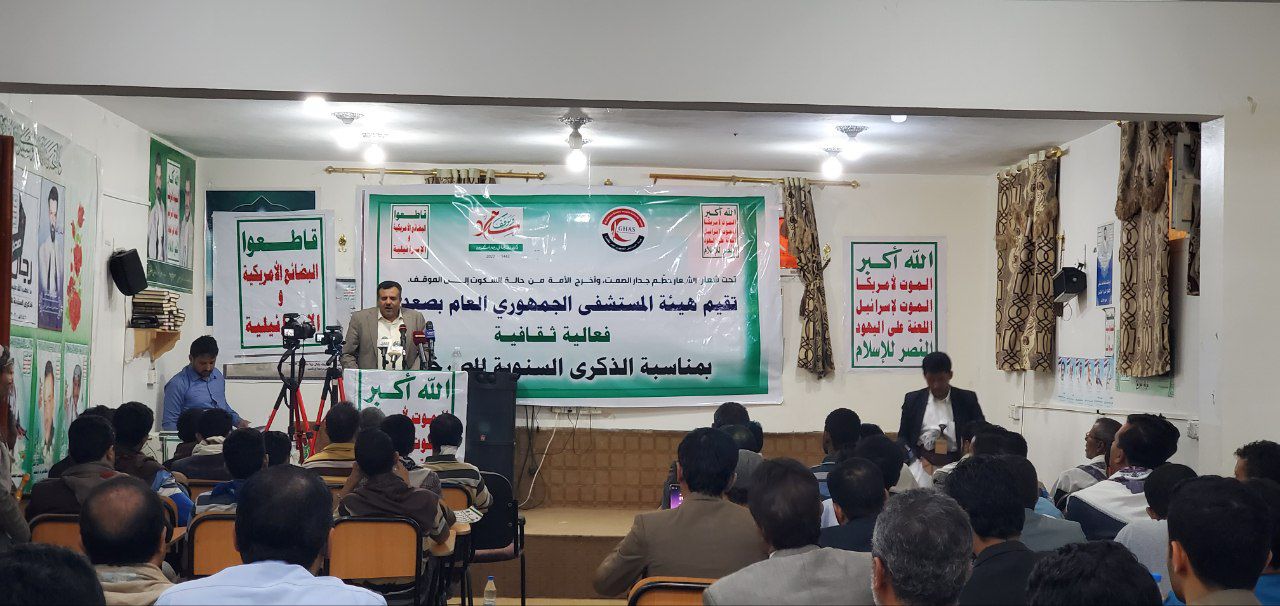 نظمت هيئة المستشفى الجمهوري العام بمحافظة صعدة اليوم فعالية خطابية بالذكرى السنوية للصرخة بعنوان “الشعار حطم جدار الصمت وأخرج الأمة من حالة السكوت إلى الموقف”.