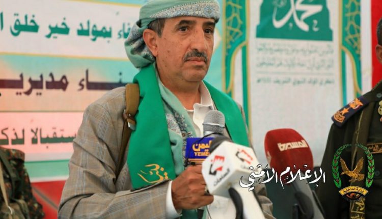 دشن نائب رئيس الوزراء الفريق الركن جلال الرويشان ووزير الداخلية اللواء عبدالكريم الحوثي اليوم بمديرية السودة بمحافظة عمران فعالية تحضيرية لذكرى المولد النبوي الشريف.