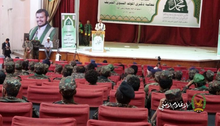 وفي الفعالية بحضور مدير عام شرطة العاصمة صنعاء اللواء الركن معمر هراش وقائد قوات الأمن المركزي بأمانة العاصمة العقيد محمد الحامس، ومستشار وزير الداخلية العميد محمد مسمار، واللواء ناصر الشوذبي مستشار قائد قوات الأمن المركزي، والعقيد حسين المهدي رئيس أركان الأمن المركزي.. أوضح مدير التوجيه المعنوي العقيد علي عز الدين، أن الشعب اليمني يعيش هذه الأيام، فرحة وابتهاج بذكرى ميلاد النبي الخاتم صلى الله عليه وآله وسلم.