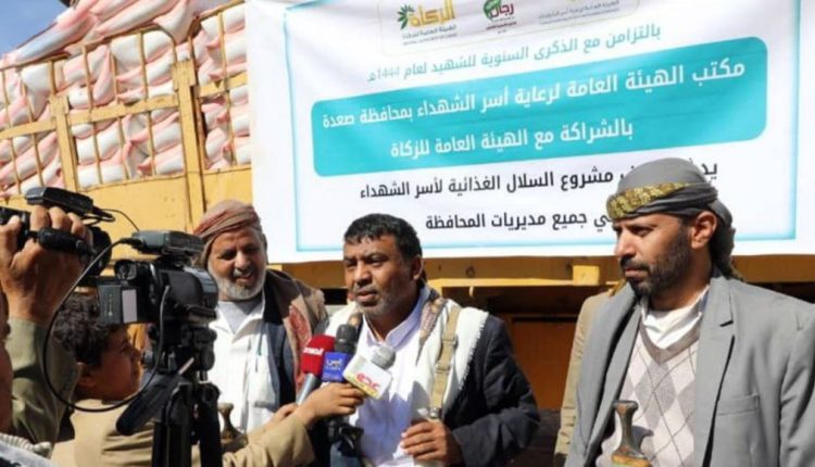 تدشين توزيع السلال الغذائية لأسر شهداء في مختلف مديريات صعدة