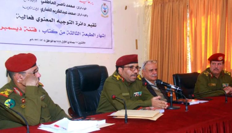 ظمت دائرة التوجيه المعنوي اليوم الاثنين ، فعالية إشهار الطبعة الثالثة من كتاب فتنة ديسمبر، بحضور عدد من الباحثين والمحللين العسكريين.