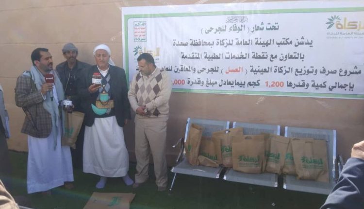 هيئة الزكاة بصعدة توزع 1200 كيلو عسل على المرضى والجرحى