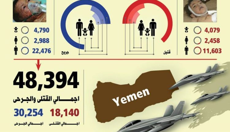 عين الإنسانية: استشهاد وجرح 48 ألف و394 مواطناً بنيران العدوان خلال 8 سنوات