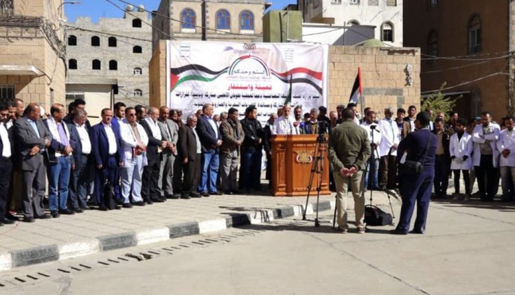 وقفة لوزارة الصحة تضامناً مع الشعب الفلسطيني وتأييداً لقرارات قائد الثورة