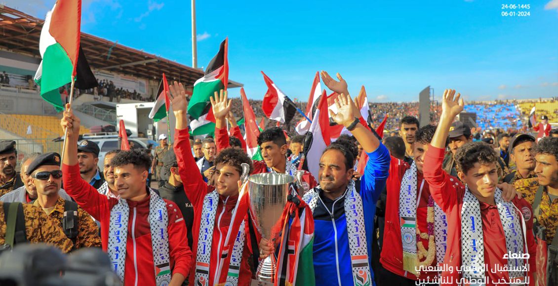 واعتبر رفع العلم الفلسطيني من أبطال منتخب الناشئين خلال انتزاع البطولة دلالة على وقوف اليمنيين مع القضية المركزية.