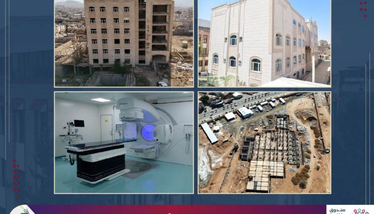 وأشار التقرير إلى أنه تم ترميم وتجهيز وافتتاح وحدات علاج الأورام في محافظات صعدة بتكلفة 34 مليونا و 572 ألف ريال والمحويت بتكلفة 28 مليونا و 761 ألف ريال و حجة بتكلفة 23 مليونا و 860 ألف ريال وعمران بتكلفة 25 مليونا و 115 ألف ريال وذمار بتكلفة 24 مليونا و 875 ألف ريال و تعز بتكلفة 22 مليونا و 859 ألف ريال.