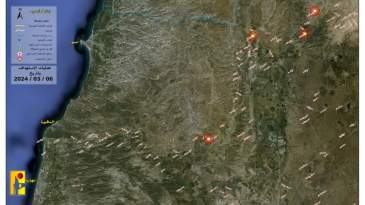1- الساعة 22:45 من مساء يوم الثلاثاء 05-03-2024 استهداف مبنى في مستوطنة افيفيم بالأسلحة المناسبة وتحقيق إصابة مباشرة، كردٍ على اعتداءات العدو الصهيوني على القرى الجنوبية الصامدة والمنازل المدنية.
