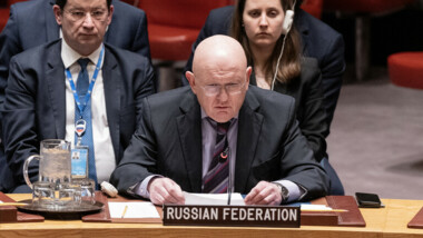 أعلن مندوب روسيا الدائم لدى الأمم المتحدة فاسيلي نيبينزيا، أن بلاده تعتقد أنه من الضروري أن يتفق المجلس على فرض عقوبات على الكيان الصهيوني على خلفية استمرار عمليته العسكرية في قطاع غزة.