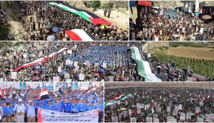 في 21 ساحة.. صعدة تخرج بمسيرات مليونية نصرة لفلسطين