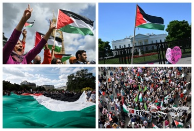 تظاهر آلاف المؤيدين للشعب الفلسطيني، امام البيت الأبيض، تنديدا باستمرار العدوان الصهيوني على قطاع غزة، ورفضا لصمت الرئيس الأمريكي جو بايدن على ما يحدث من مجازر وانتهاكات صهيونية في القطاع.