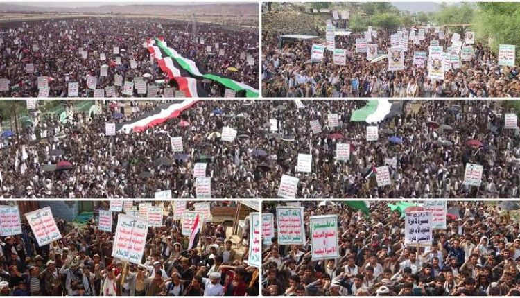 وبالتزامن، صباح وعصر اليوم، تخرج مئات المسيرات المليونية الكبرى في مختلف المديريات والمحافظات اليمنية الحرة نصرة ودعما لغزة.