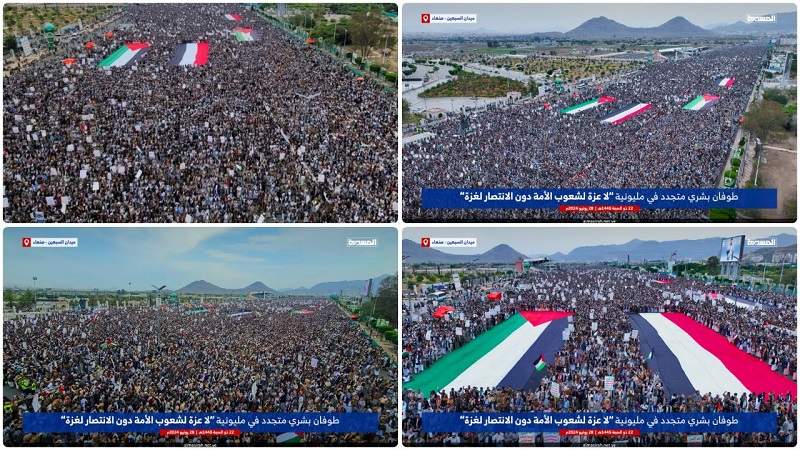 مسيرات مليونية متجددة بالعاصمة صنعاء تحت شعار (لا عزة لشعوب الأمة دون الانتصار لغزة)