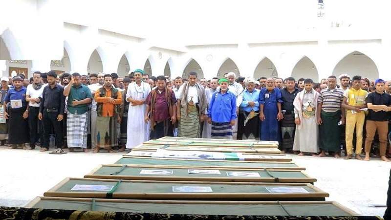 الحديدة تشيع جثامين شهداء العدوان الإسرائيلي