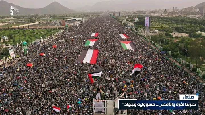 خرج الملايين إلى ميدان السبعين بالعاصمة صنعاء، اليوم الجمعة، في مسيرات جماهيرية شعبية متجددة كبرى إسناد ونصرة لفلسطين تحت شعار “نصرتنا لغزة والأقصى.. مسؤولية وجهاد”.