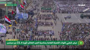 شهد ميدان السبعين بالعاصمة صنعاء، اليوم السبت، عرضا عسكريا شعبيا، لمخرجات التعبئة العامة، احتفاءً بالعيد العاشر لثورة الـ21 من سبتمبر المجيدة وتضامنا مع فلسطين ولبنان.