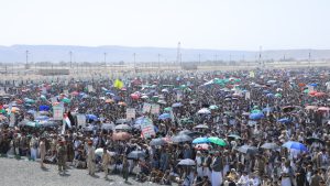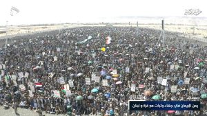 وأكد المحتشدون استمرارهم بالخروج الأسبوعي في مسيرات مليونيه حتى النصر بإذن الله، معبرين عن ارتياحهم لإنجازات التصنيع الحربي للإنتاج تقنيات حديثه تمثلت في صناعه صواريخ فرض صوتيه قادره على تجاوز الخطوط الدفاعيه للعدو الإسرائيلي.