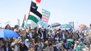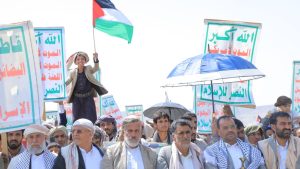 وحمل المتظاهرون الأعلام اليمنية والفلسطينية ورايات الحرية، واللافتات الداعية إلى مقاطعة المنتجات الأمريكية والإسرائيلية، مؤكدين ثباتهم في نصرة غزة ولبنان والتمسك بقضايا الأمة وعدم التفريط في مقدساتها.