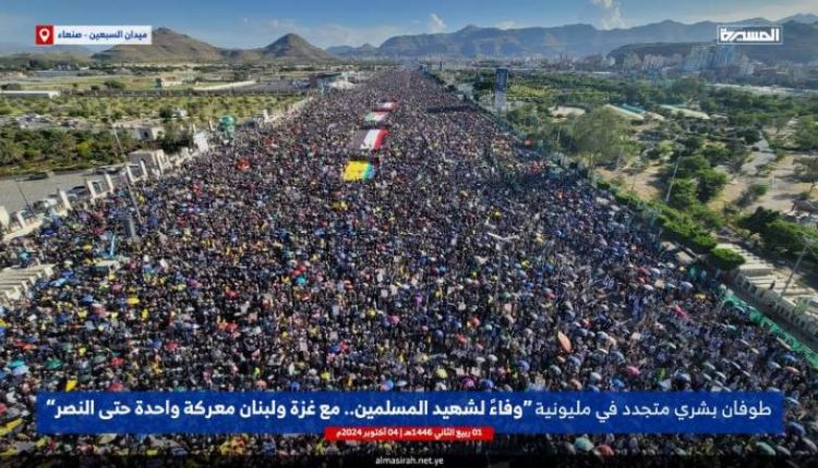 (وفاء لشهيد المسلمين.. مع غزة ولبنان معركة واحدة حتى النصر). صنعاء تحتشد في طوفانها المليوني الـ51