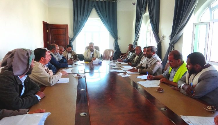 وتطرق الاجتماع الذي حضره أمين عام المجلس المحلي محمد العماد ووكيلا المحافظة صالح عقاب ومحمد البعداني إلى التحضيرات لتنفيذ مشروع التشجير الاستثنائي وتبليط أرصفة الشوارع العامة.