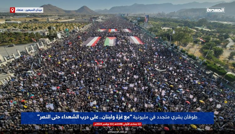 تحت شعار (مع غزة ولبنان.. على درب الشهداء حتى النصر).. طوفان مليوني جديد بصنعاء إسنادا لفلسطين ولبنان
