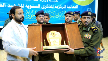 وفي الفعالية التي حضرها مستشارو وزير الداخلية ورؤساء المصالح ومدراء عموم الوزارة، وجمع من الضباط والأفراد، قدمت وزارة الداخلية درعا لأسرة الشهيد القائد تسلّمه نجله اللواء علي حسين الحوثي.