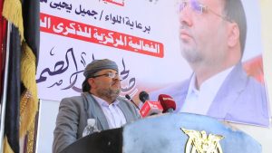 من جانبه استعرض عضو رابطة علماء اليمن محسن الحمزي جوانب من حياة الشهيد الصماد ومواقفة البطولية في مواجهة العدوان بكل قوة وعنفوان وتضحية .