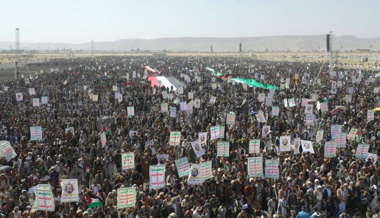 وخرجت المسيرات الجماهيرية في 35 ساحة بصعدة تحت شعار “على الوعد مع غزة ضد التهجير، ضد كل المؤامرات”، حيث خرجت المسيرة المركزية بالمحافظة في ساحة المولد النبوي الشريف غرب المدينة.