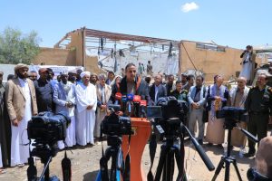عُقد اليوم بمسرح جريمة العدوان الأمريكي بمركز إيواء المهاجرين في محافظة صعدة، مؤتمر صحفي للسلطة المحلية واللجنة الوطنية للاجئين ووزارة العدل وحقوق الإنسان ومنظمات المجتمع المدني والجاليات الأفريقية.